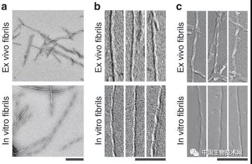研究(jiū)團隊在這3名患者的樣本中,都發現了3種各不相同、但結(jié)構相關的β澱粉樣蛋白原纖維形態,並確定了其中一種形態的(de)分子結構。出乎意料的是,腦源性原纖維的結構與實驗室製備的β澱粉樣蛋白原纖維的結構差異顯著。比如,腦(nǎo)源性β澱粉樣蛋白原纖維是右旋折(shé)疊,它們的肽(tài)折疊方式也與此前分析的原纖維折疊方式非常不同。該結構(gòu)突出了表征患者源澱粉樣原纖維的重要(yào)性。此(cǐ)外,該研究還有助於理解阿爾茨海默病導致的突變對β澱(diàn)粉樣蛋白的影響,未來將(jiāng)有助於開發防止這類原纖維(wéi)形成的藥(yào)物。