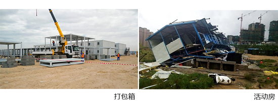 在目前的(de)發展中,我們在新聞上看到的都是臨(lín)時建築活動房的頻繁倒塌,在活動房抗力小(xiǎo),遇地(dì)基不固的前提下,產(chǎn)生出打包箱,它抗震8級、抗風11級、使用壽(shòu)命20年以上。