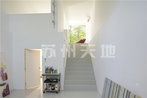 通過(guò)一部樓梯把原有住宅和集裝箱辦公室